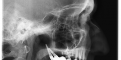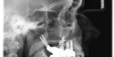 1. In the maxilla: extraction, and implantation of pterygoid implants, two hybrid plates, and five one-piece compressive implants